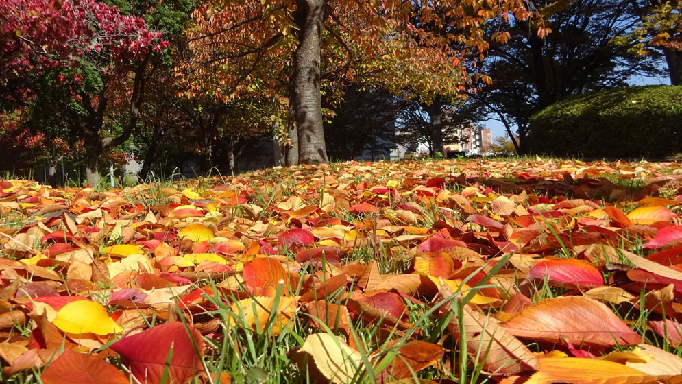 大阪府立中央図書館に行ってきました。見事な紅葉に思わずパチリ。
